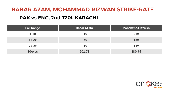 The Babar-Rizwan stand has always been the one that sets up the platform. It is evident that Rizwan has been more of the attacking one in this partnership, it was Babar who played a similar role previously hence the stark difference in average.