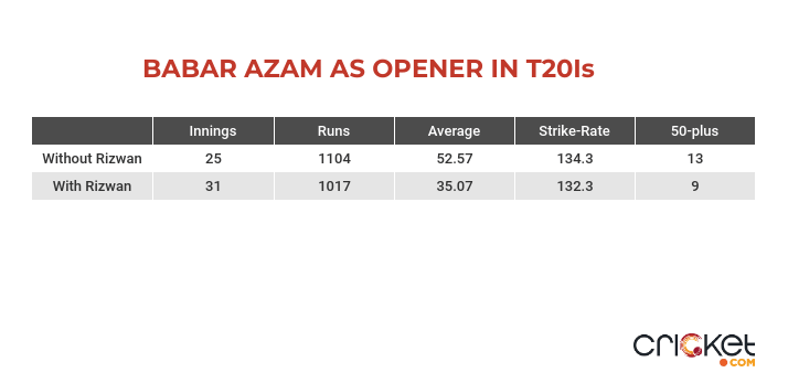 Since opening with Rizwan, though his average has dropped way down, while his strike-rate has remained the same more or less, which has perhaps led to it being an issue.