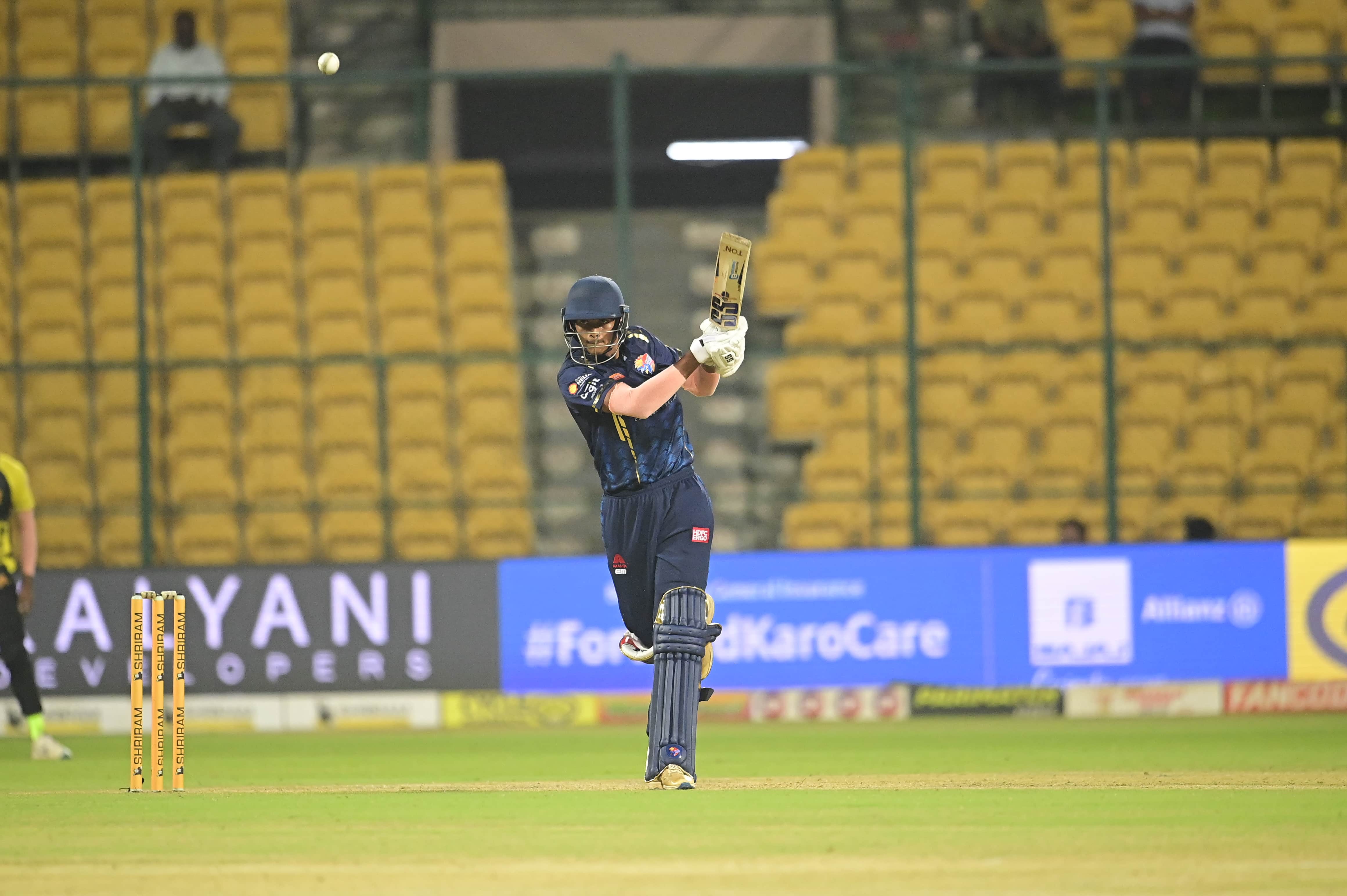 On August 18 (Sunday), the Bengaluru Blasters logged their third consecutive victory as they defeated the Shivamogga Lions by seven wickets at the M.Chinnaswamy Stadium. Bhuvan Raju’s unbeaten 59, complimented by a key contribution from Mayank Agarwal (42), took the Blasters to a comfortable win with 2.4 overs to spare.