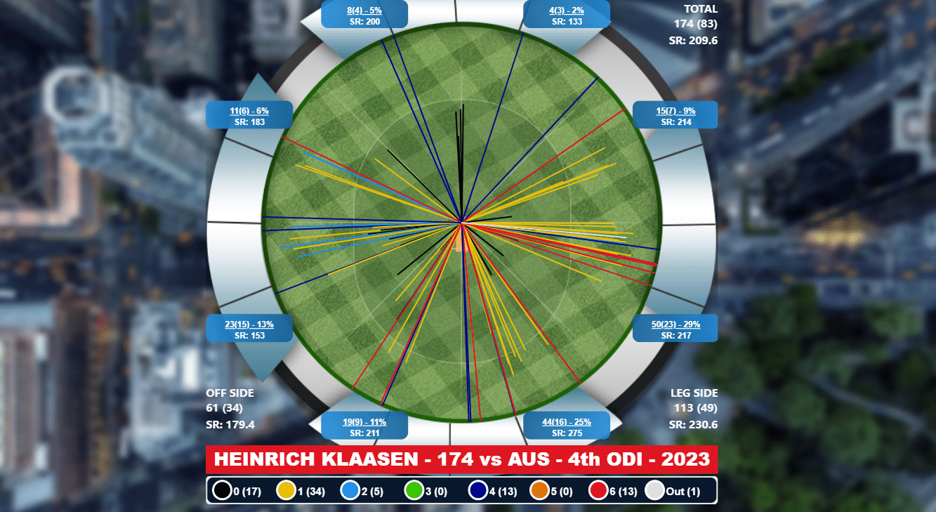 In fact, 102 of his total runs came in the final 10 overs. No matter what Mitchell Marsh threw at him, Klaasen knocked it out of the park with ease. Most of his runs came through the long-on and deep mid-wicket region, and that’s always been his strength. With so many runs on the board, Australia didn’t stand a chance and ended up losing the game by 164 runs.