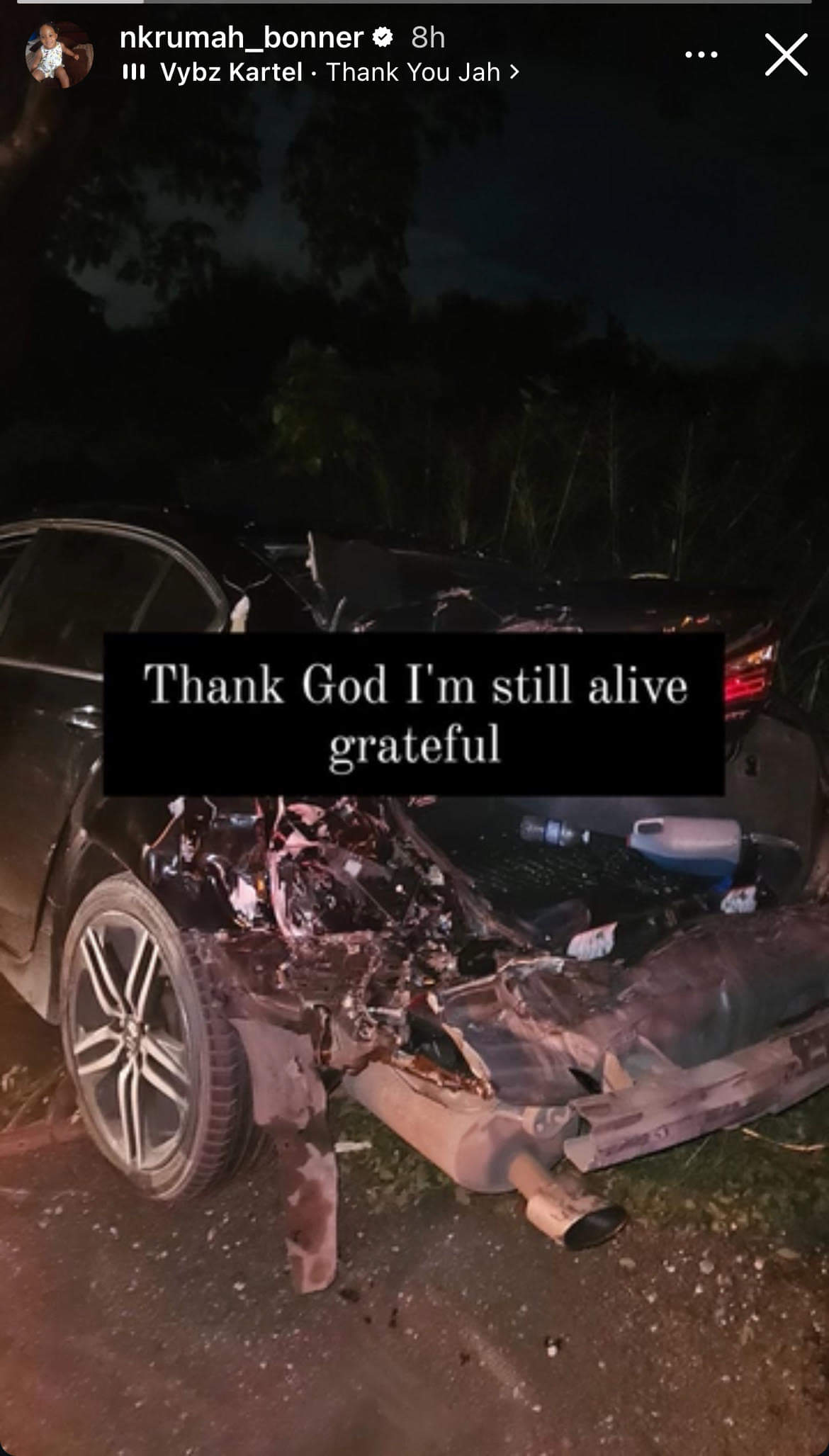 West Indian batter Nkrumah Bonner was involved in a horrific car crash around 2 am India time on November 18 (Monday). He posted a story on his Instagram account where he expressed gratitude after surviving the horrific car crash. The picture he posted showed the entire front bumper and hood of his car crushed after the accident.