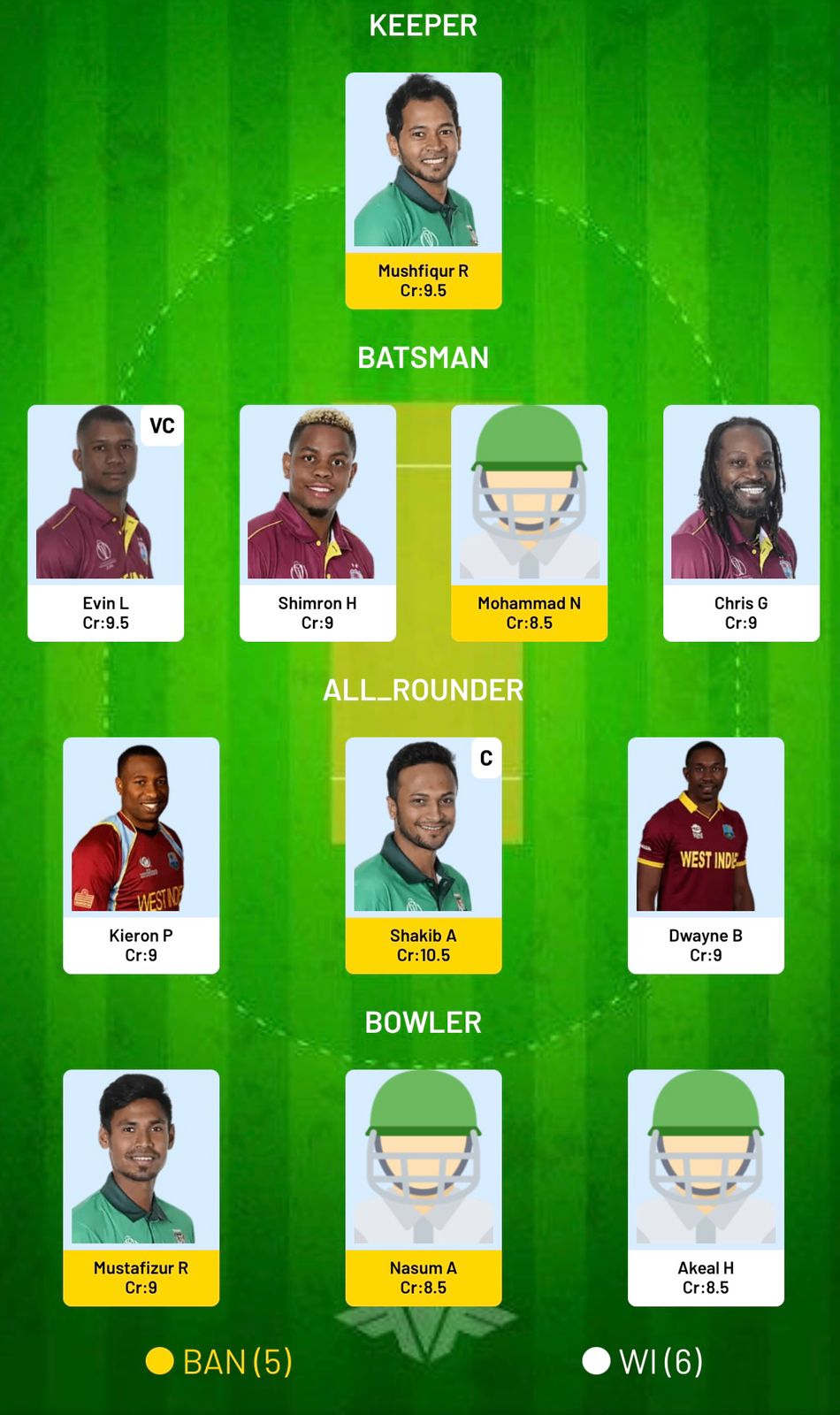 FANTASYAfter suffering defeats in the first two games of the Super 12s in this edition of the World Cup, West Indies will lock horns with Bangladesh in an afternoon encounter at the Sharjah Cricket Stadium. In the 12 games played thus far between the two sides, West Indies are marginally ahead by winning six games, while the Tigers have won five, and one match ended in no result.
