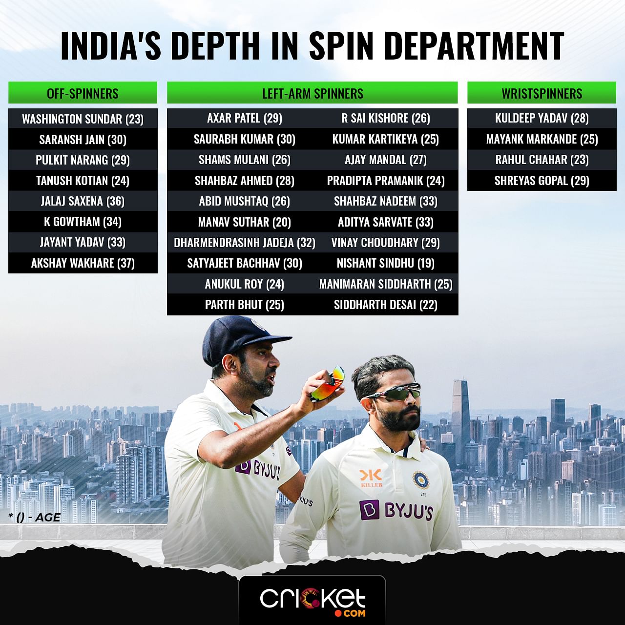 But things get complicated once you start looking for an off-spinner. Honestly, India doesn’t have a single readymade replacement for Ashwin. Jalaj Saxena, K Gowtham, Jayant Yadav and Akshay Wakhare have consistently produced good numbers in domestic cricket, but all of them are above 33. Washington Sundar has played four Tests but has impressed more with the bat than the ball. Meanwhile, the likes of Saransh Jain, Pulkit Narang and Tanush Kotian are still raw, with none of them having played for India A yet.