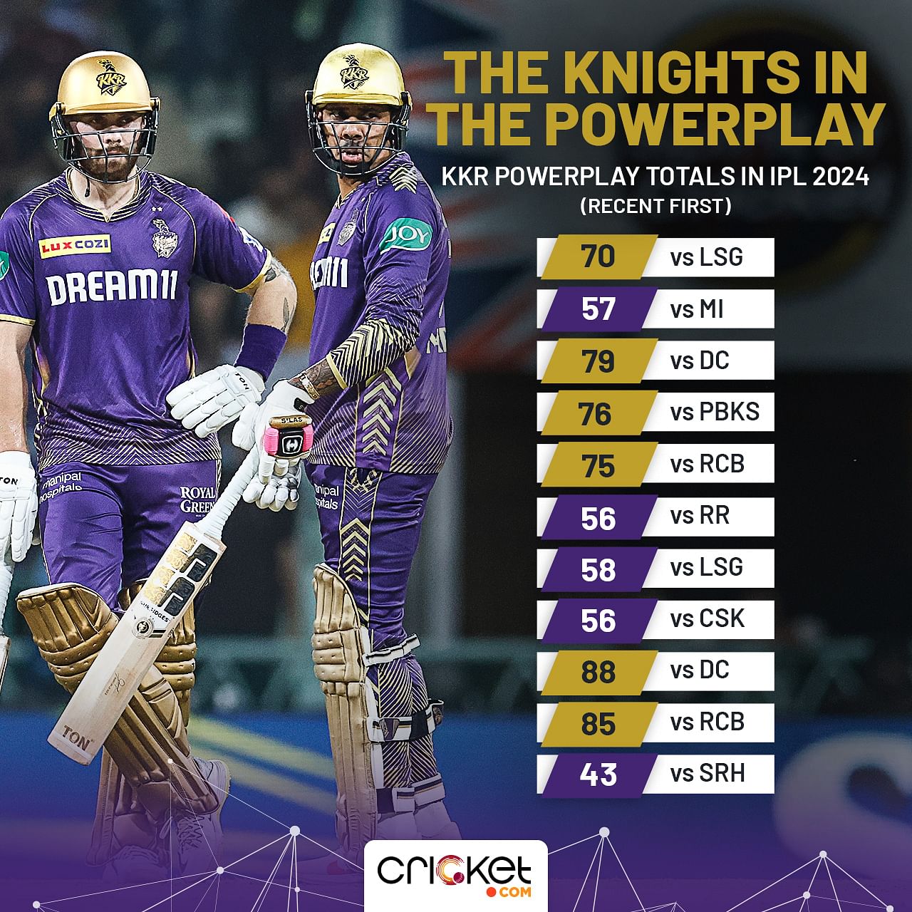 KKR have scored 70 plus runs in the powerplay six times this season and have the highest scoring rate in that phase.