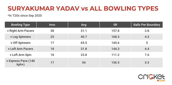 Suryakumar Yadav, however, is a batsman for all phases and all bowling types, with no noticeable shortcoming.