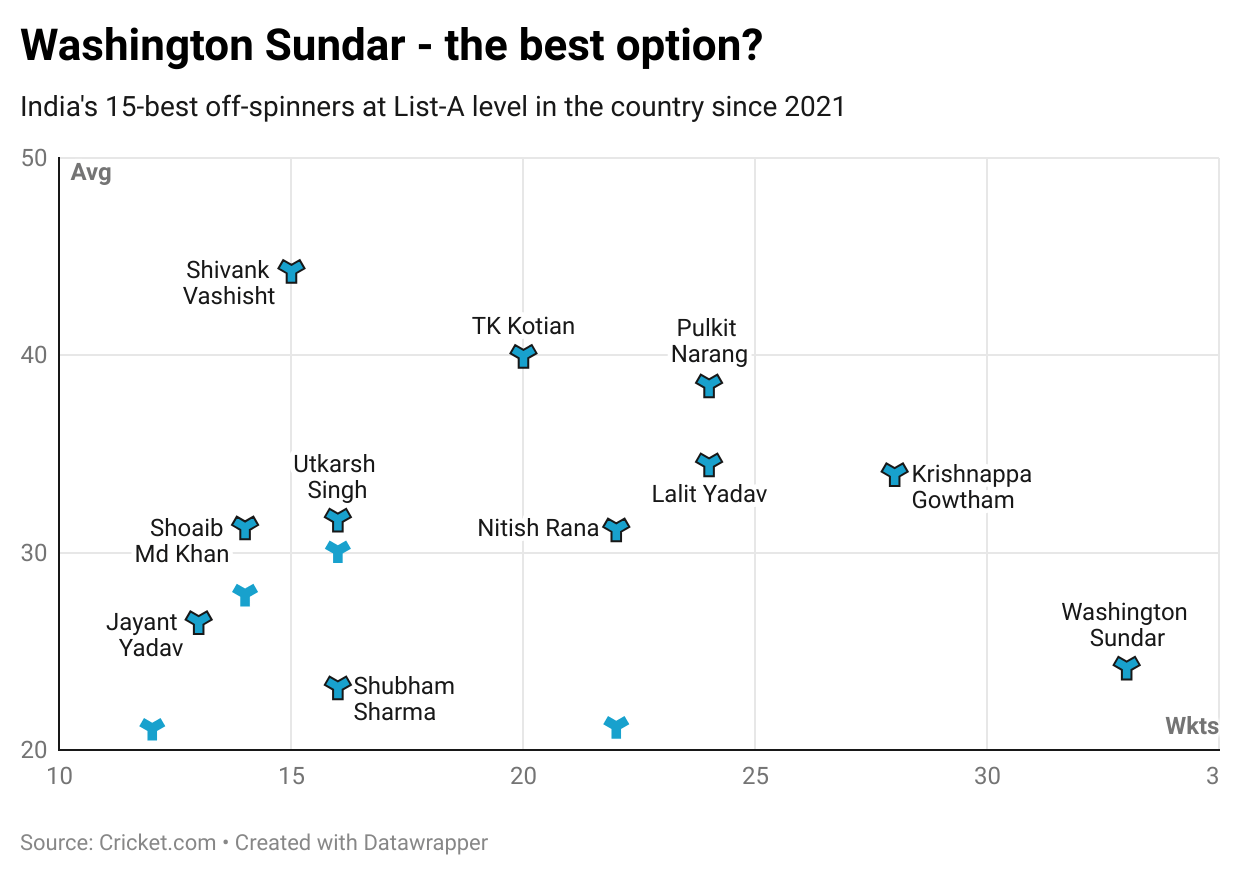That’s something that has always been Washington's USP, his ability to bowl in tough situations across different phases - be it the new ball or the death-overs. That already has put the off-spinner in his own category with just one of his skill sets.