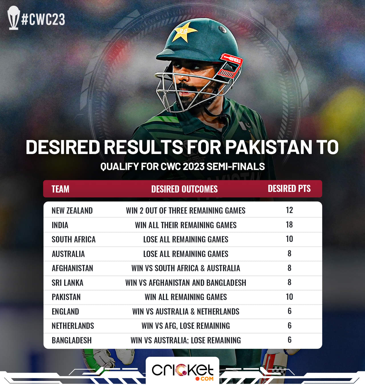 Pakistan still have a chance to reach 10 points, which lends them a mathematical chance. Bangladesh, however, are out of contention with their 87-run defeat against the Netherlands.