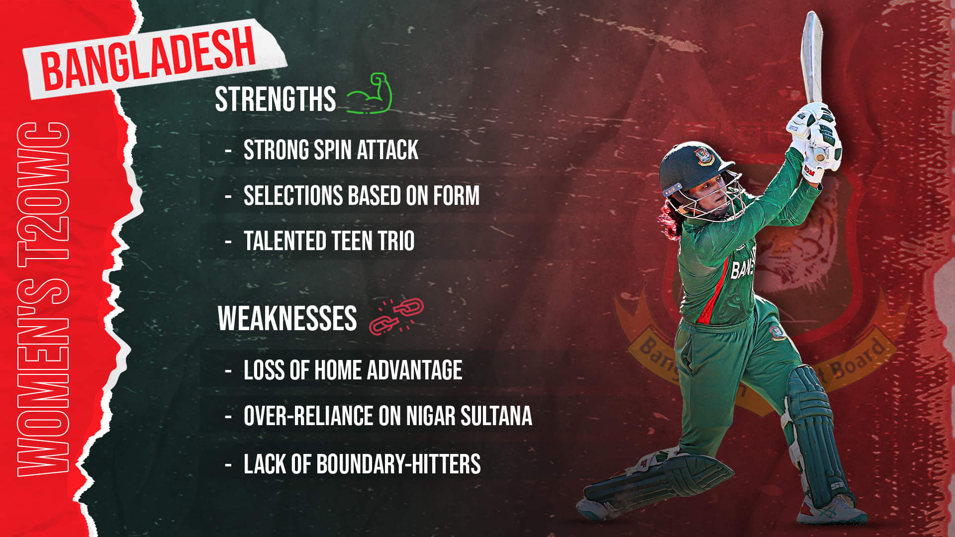 It was supposed to be a historic home T20 World Cup for Bangladesh, but ultimately wasn’t to be for Nigar Sultana and co. Without the home comfort, the Bangladeshi unit looks like one of the weakest teams in this competition. They would need to punch above their weight in both batting and bowling to challenge other teams in their group.