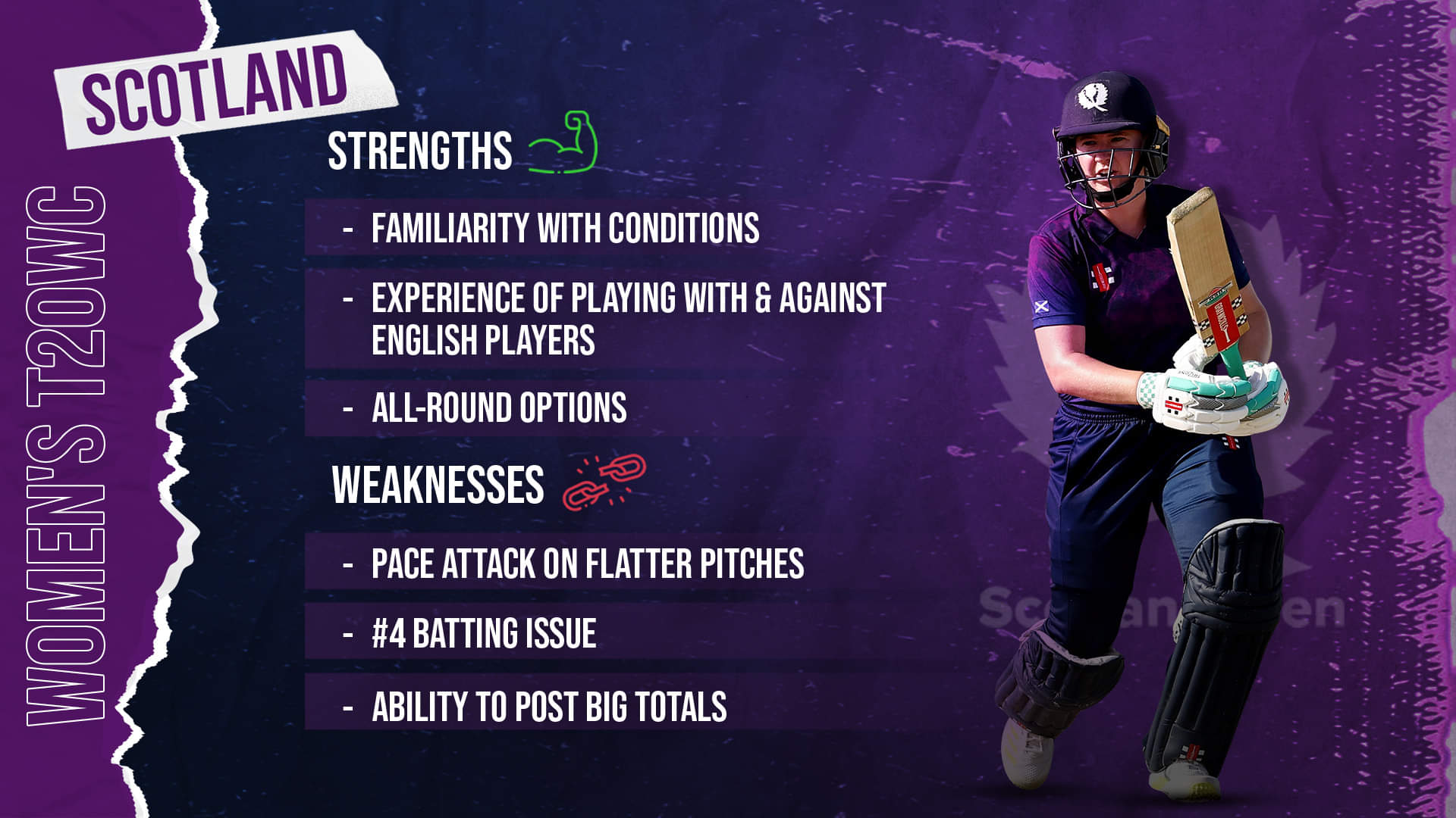 That experience would become really crucial as almost all teams would come hard at the World Cup debutants. It would be the Bryce sisters (Kathryn and Sarah), who are quite active in English domestic cricket, and have a lot of experience playing tournaments like the Hundred that would be key to their campaign. Kathryn has also played in the Women’s Premier League (WPL). Along with her steady batting and booming inswingers, she would be extremely crucial in the powerplay for Scotland.