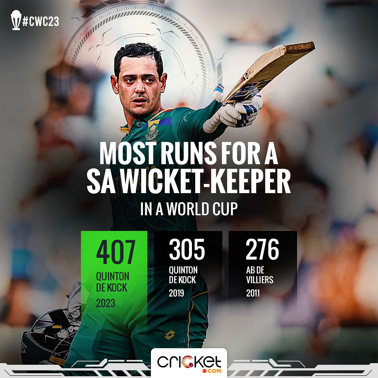 Well, that wasn’t his last race. But this is Quinton de Kock’s last 50-over World Cup, and the wicketkeeper-batter is on a mission to make it a memorable one. It’s only been five games, but de Kock has already smashed three centuries - the most for a South African batter in a World Cup. The left-hander will be retiring from the format after this showpiece event and wants to leave no stone unturned.