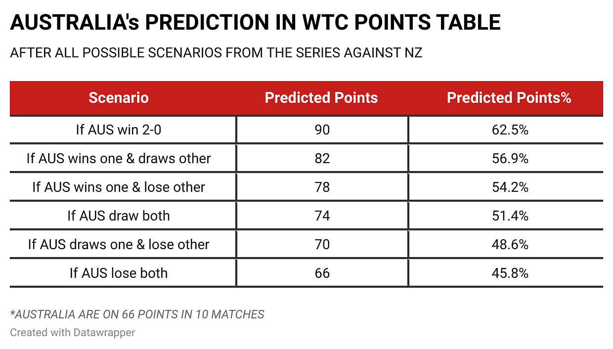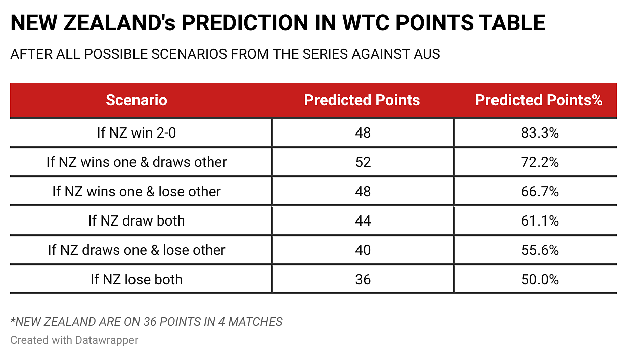 After the series against Australia, New Zealand have a home series against England and two away tours to India and Sri Lanka in this cycle.
