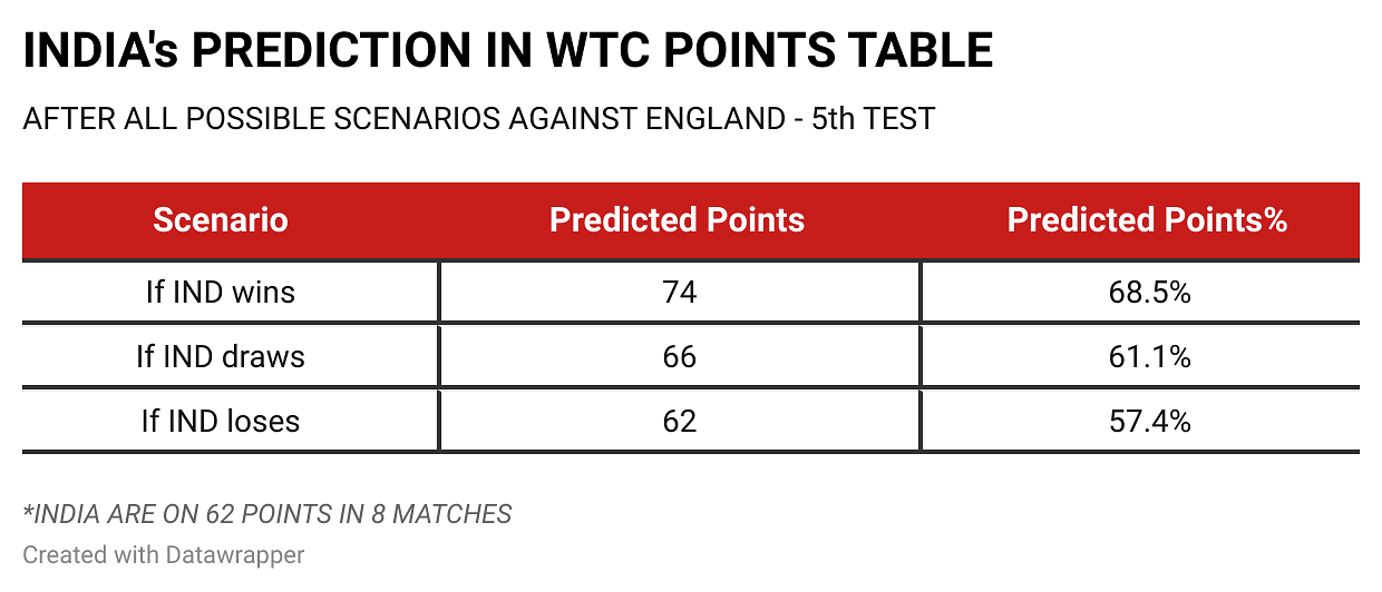 However, their stern test awaits against the defending champions Australia. They are set to play two Tests against the 2021-23 champs in the comfort of their home. If they win the series by 2-0, they will reach 40 points with 83.3% PCT and will have one foot in the WTC final.