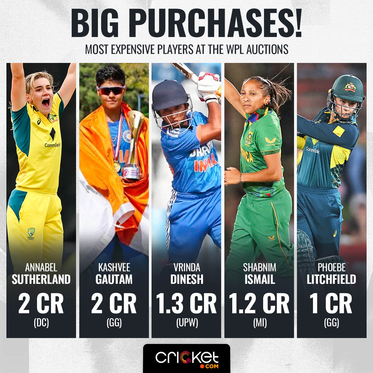 DC splashed INR 2 crore on Australia all-rounder Annabel Sutherland (Base price INR 40 lakh), while the Giants spent the same amount on uncapped Indian all-rounder Kashvee Gautam (Base price INR 10 lakh), making them the most expensive players in this edition of the tournament.