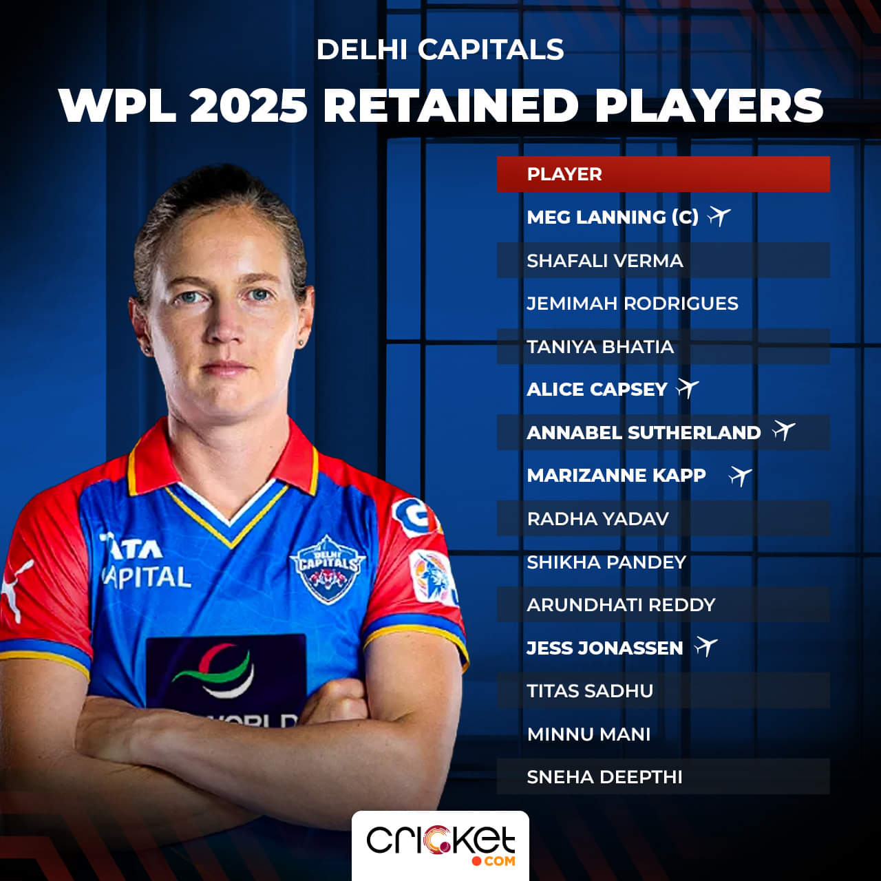 Two-time WPL finalists Delhi Capitals have also followed MI's example, retaining the core of their side. However, Laura Harris, Ashwani Kumari, Poonam Yadav, and Aparna Mondal have not been included.