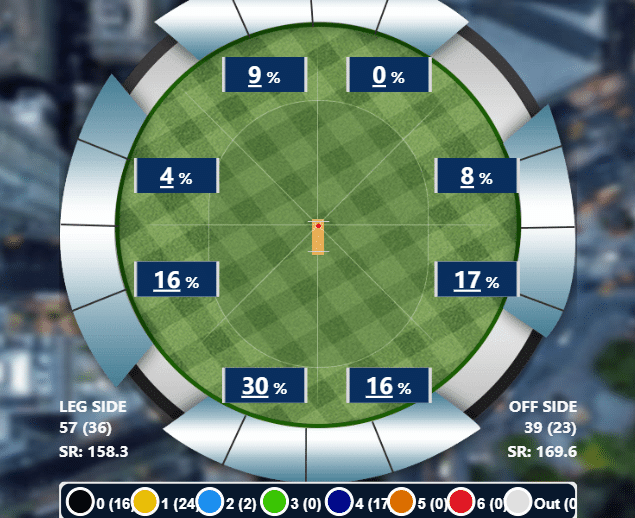 She charged down the track on 14 deliveries, mostly against spinners, and scored 33 runs. Most of these boundaries and runs were scored in the V (between deep extra cover and deep mid-wicket) and were immaculately placed depending on where the fielders were stationed in those areas.
