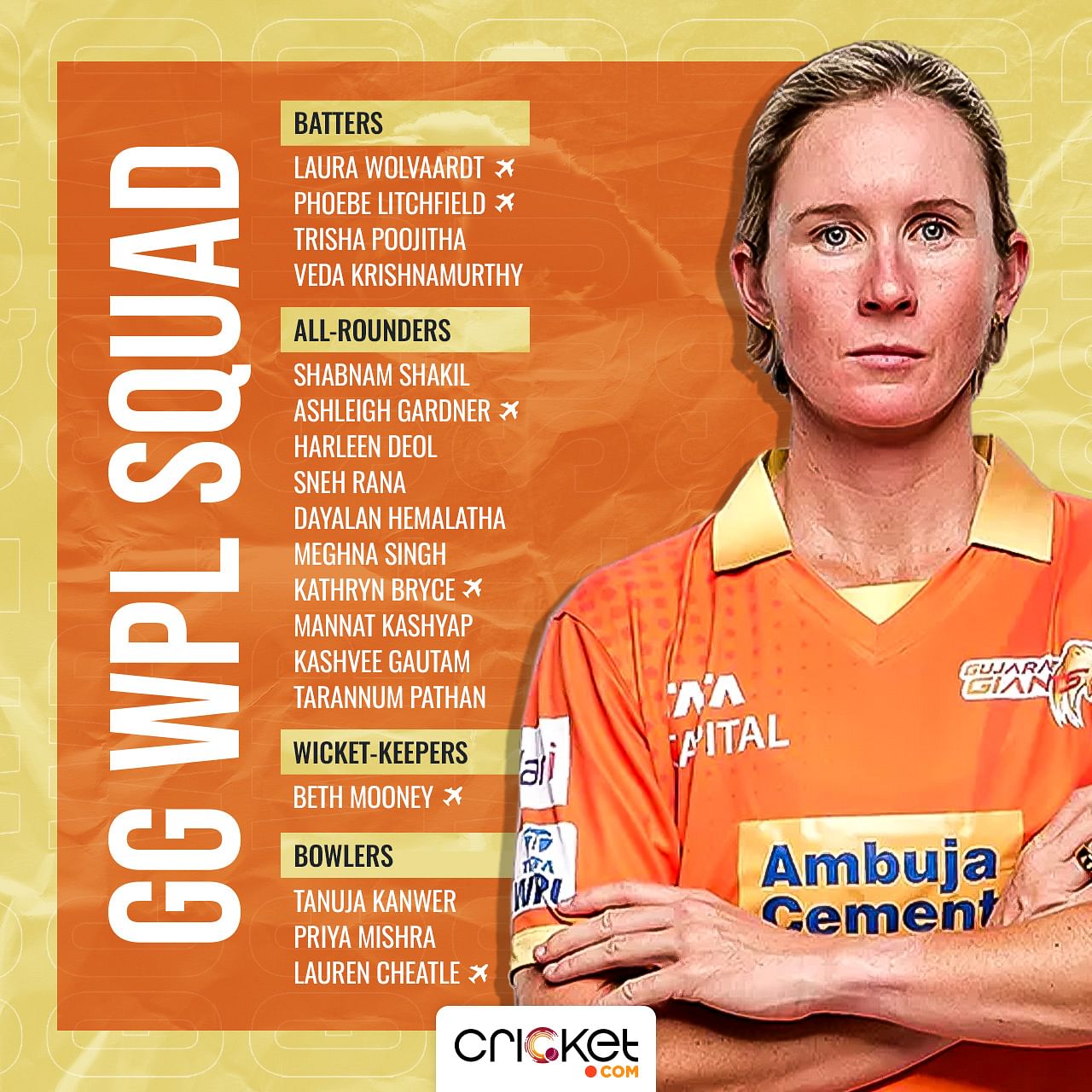 Probable first choice XI - Laura Wolvaardt, Beth Mooney (c & wk), Phoebe Litchfield, Harleen Deol, Ashleigh Gardner, Dayalan Hemalatha, Sneh Rana, Kathryn Bryce, Kashvee Gautam, Meghna Singh, Tanuja Kanwar