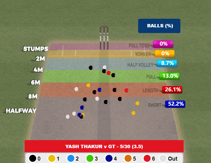 At this point, it’s worth noting how he relied on stealthy change-ups in speeds quite a bit after the powerplay. Still, during the powerplay, he relied on pace-on deliveries, showing a penchant for adaptability and the abundance of skills he possesses.