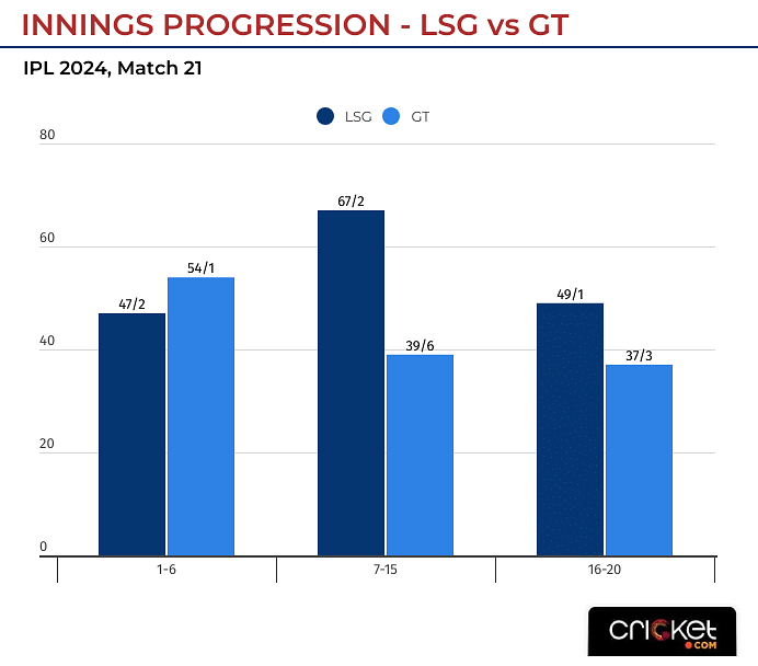 GT lost their first wicket on the last ball of the powerplay. In the middle overs, they managed only 39 runs for six wickets. That is where the difference was created, where Krunal Pandya picked 3/11 in his four overs.