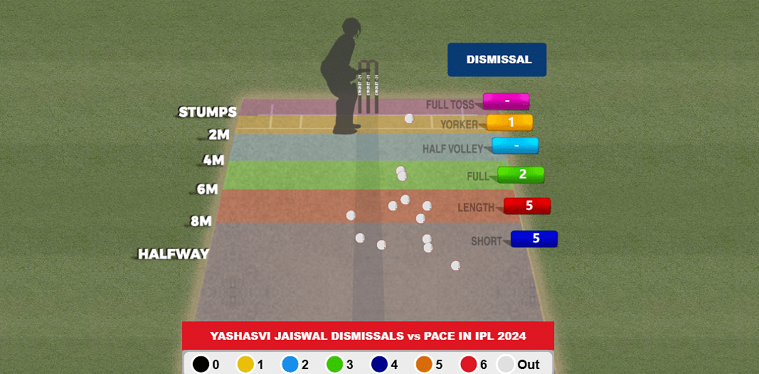 At the 2024 IPL, the left-hander’s potential weakness against pace was evident, with 13 out of his 14 dismissals coming against the quicks. The 22-year-old struggled to combat pace when they were on the money, with 40.5% of the balls he faced against them being dots.