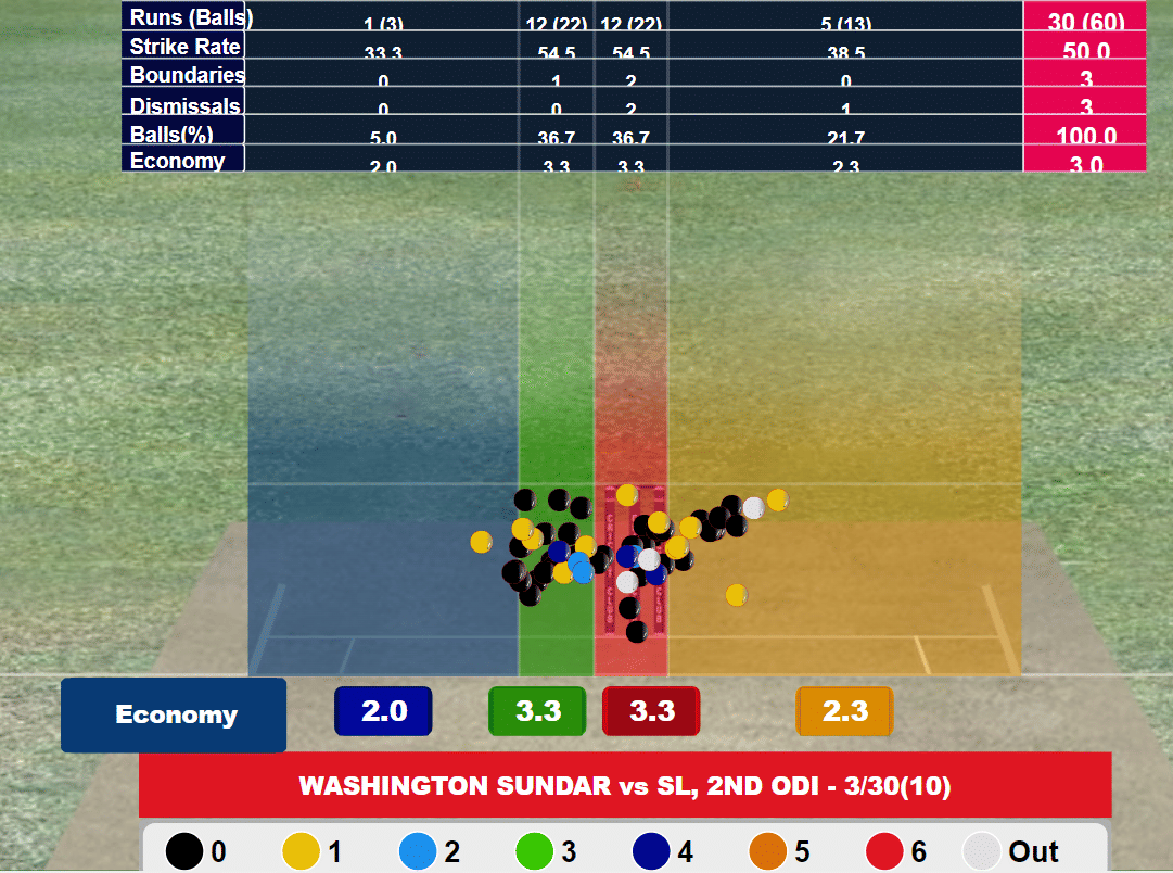 Washington's spell didn’t end there. He even removed the well-set Mendis at the other end. While it was the first ball of that over, it was still a setup, with the off-spinner understanding Mendis’ strength - playing the sweep shot - was also his biggest weakness against spin.