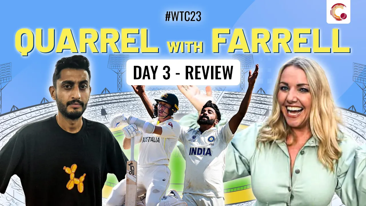 In this episode of Quarrel with Farrell, Mel and Avanish talk about day 3, discuss India's chances in last 2 days. You'd wanna watch this as there is merchandise to be won at the end of the show! Comment below with your right answers.